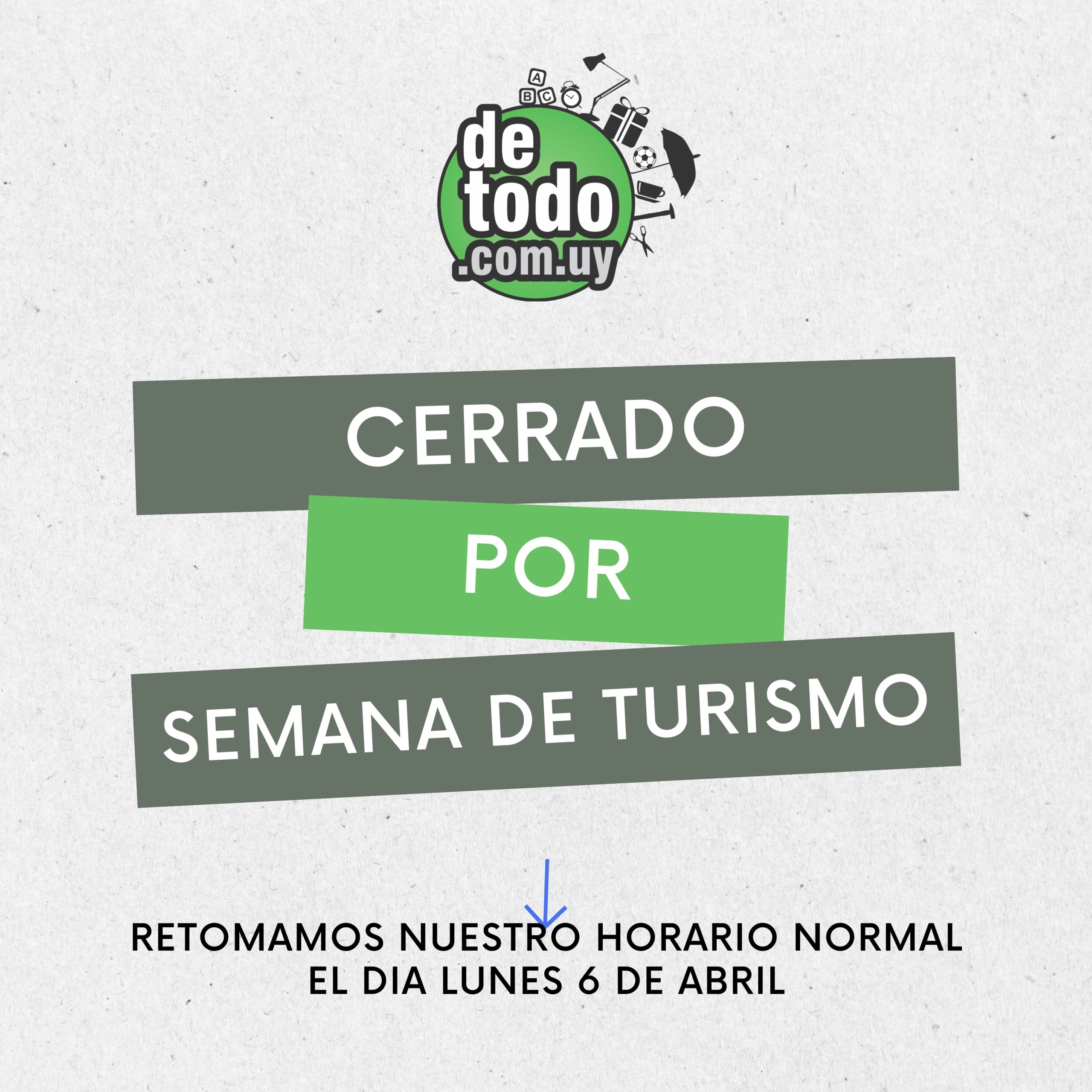 HORARIO ESPECIAL Categoría: SEMANA DE TURISMO Descripción Descripción LUNES 30/03 Y MARTES 31/03, SOLO SE REALIZARAN ENTREGAS CON PREVIA COORDINACION.