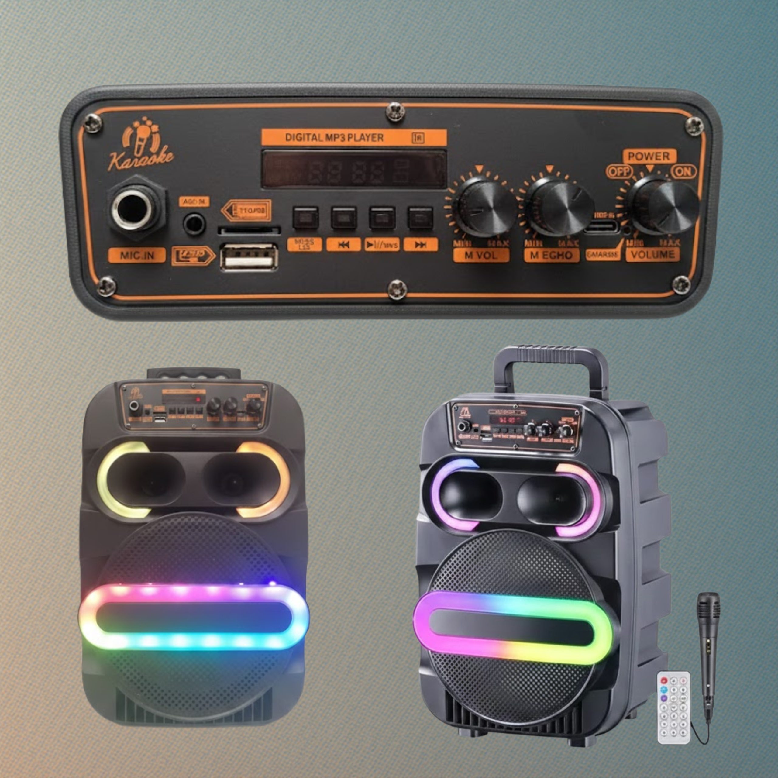 Cuenta con múltiples entradas como USB y auxiliar AUX, brindando gran versatilidad de uso. Además, incluye micrófono con cable ideal para karaoke, animaciones, clases o eventos, y control remoto para un manejo cómodo a distancia.
